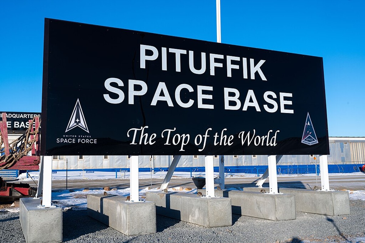 Skilt utenfor Pituffik Space Base (Tidligere Thule Air Base) på Grønland. Foto: US Space Force